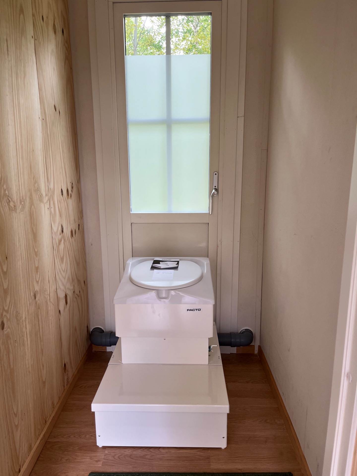 I maj 2025 installerade Hovmantorps Byggservice en ny torrtoalett i klubbstugan.